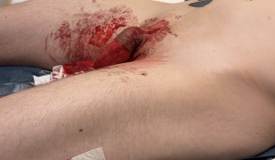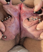 Continued work to split my junk, 20 x barbells 3.2mm in my sack.Looking to be castrated next and replace testicles with XL silicone balls.
